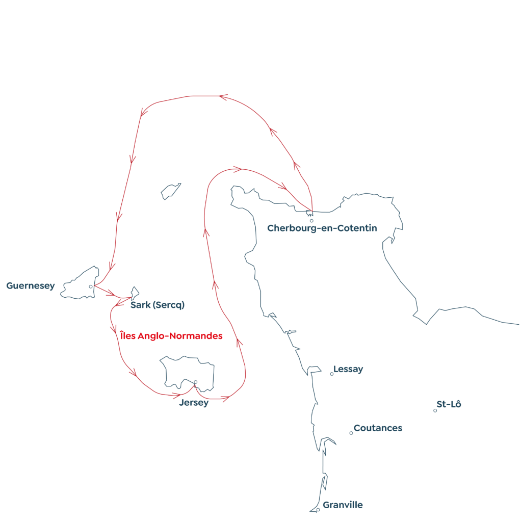Depuis Cherbourg, nous mettrons le cap sur Guernesey, avant de rejoindre Jersey, la plus grande des îles, réputée pour ses falaises dorées et ses petites criques secrètes. Nous poursuivrons notre route vers Sark, où la nature règne en maîtresse.